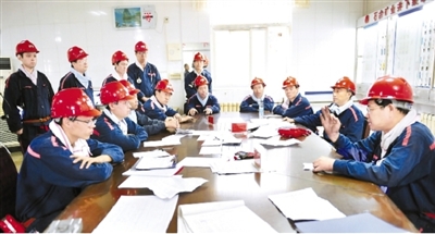 安徽淮北礦業(yè)集團(tuán)朔石礦業(yè)積極推進(jìn)“一礦兩井”升級版安全質(zhì)量標(biāo)準(zhǔn)化觀摩交流活動。圖為西部井采掘生產(chǎn)系統(tǒng)人員近日在東部井下井后交流觀摩感受。喬時慶 攝