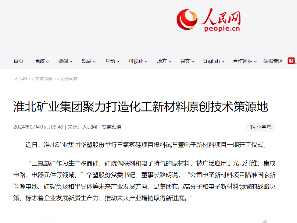 近日,淮北礦業(yè)集團(tuán)華塑股份舉行三氯氫硅項(xiàng)目投料試車暨電子新材料項(xiàng)目一期開(kāi)工儀式。