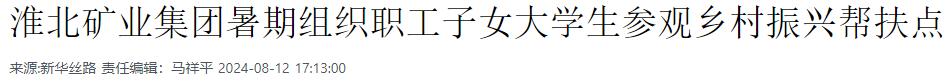 炎炎夏日,萬物崢嶸。8月9日,淮北礦業(yè)集團(tuán)開展“學(xué)子看家鄉(xiāng),青春淮礦行”暑期社會實(shí)踐活動,邀請來自清華大學(xué)、北京大學(xué)、中國科技大學(xué)等高校的20余名職工子女大學(xué)生“身臨企境”,沉浸式感受集團(tuán)的優(yōu)秀企業(yè)文化,以及在鄉(xiāng)村振興工作中彰顯的國企擔(dān)當(dāng)。