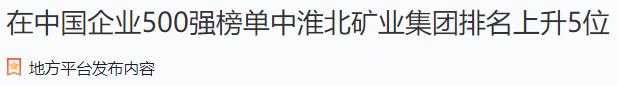 近日,在2024中國500強企業(yè)高峰論壇上,中國企業(yè)聯(lián)合會、中國企業(yè)家協(xié)會連續(xù)第23次發(fā)布中國企業(yè)500強名單。淮北礦業(yè)集團以安徽省煤炭企業(yè)第一名的成績,排名第300位,較2023的排名第305位,上升5位。