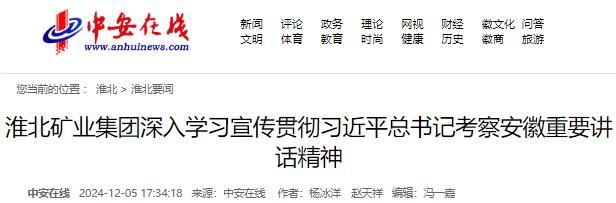 《學(xué)習(xí)強(qiáng)國(guó)》《中安在線》:淮北礦業(yè)集團(tuán)深入學(xué)習(xí)宣傳貫徹習(xí)近平總書(shū)記考察安徽重要講話精神