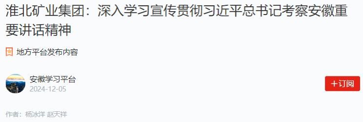 “我們將扎實(shí)推動(dòng)習(xí)近平總書(shū)記考察安徽重要講話精神進(jìn)基層、入人心,把重要講話精神全面滲透在具體工作中,把學(xué)習(xí)成效落實(shí)到實(shí)際行動(dòng)上?!被幢钡V業(yè)集團(tuán)黨委宣傳部相關(guān)負(fù)責(zé)人說(shuō)。