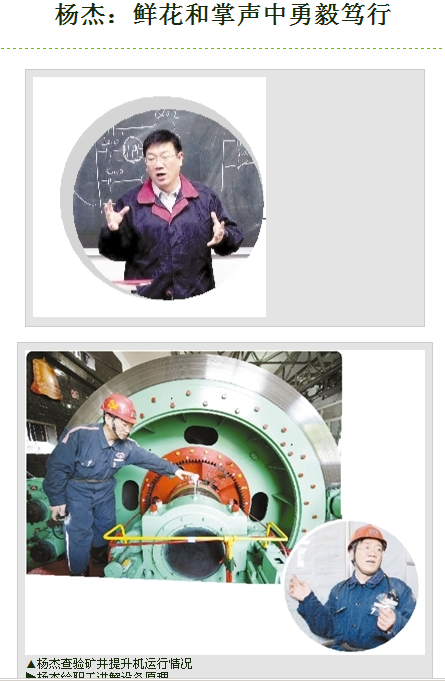 楊杰,安徽淮北礦業(yè)集團(tuán)朔石礦業(yè)公司機(jī)電科高級技師。他研讀80多本專業(yè)書籍,進(jìn)行大小革新200多項(xiàng),由一名普通工人成長為淮北礦業(yè)首席技師、楊杰講堂主任。他先后獲得全國勞動模范、國家級技能大師、“同煤杯·第二屆感動中國的礦工”十大杰出人物等多項(xiàng)榮譽(yù)稱號。