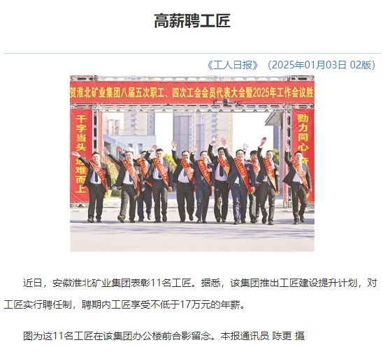 《工人日報》:淮北礦業(yè)集團表彰11名工匠
