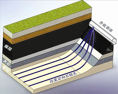 朱樂章說,在鉆探方面,采用地面順層鉆進精確控制技術(shù),對疑似突水點及薄層灰?guī)r中的各類裂隙進行拉網(wǎng)式探查;在注漿方面,對探查到的突水通道及巖溶裂隙進行高壓注漿,達到防止突水的目的。