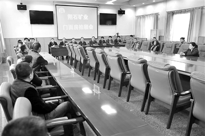 ?安徽淮北礦業(yè)集團朔石礦業(yè)公司將街道門面房向社會公開招租,使臨街房產比以往增值一倍多。圖為公開招租現(xiàn)場。喬時慶 攝
