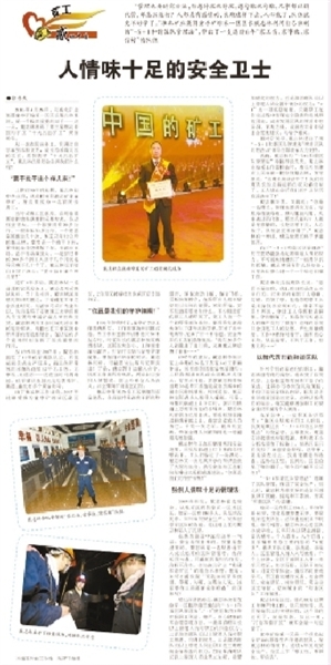 煤炭報(bào)5月23日人物版《人情味十足的安全衛(wèi)士》報(bào)道了我們礦的戴志林和他的“-5+1和諧區(qū)隊(duì)管理法”。這項(xiàng)管理法實(shí)施以來,受到了礦上職工的好評(píng)。礦上的職工對(duì)“-5+1和諧區(qū)隊(duì)管理法”的具體內(nèi)容闡述了各自的看法。