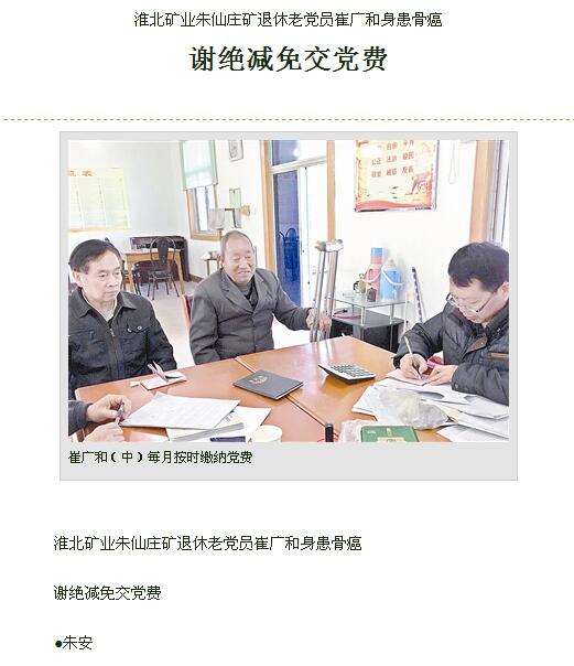 崔廣和老人身患重病,家庭經(jīng)濟拮據(jù),但他從未向組織提出過困難申請或其他要求。該礦黨委得知老人的實際情況后,多次到他家中探望,并按規(guī)定要為老人減免黨費,但被老人婉言謝絕了。