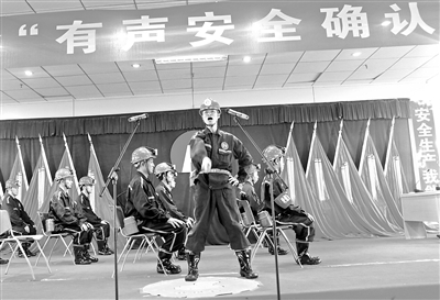 安徽淮北礦業(yè)集團(tuán)楊柳煤業(yè)公司推進(jìn)“現(xiàn)場(chǎng)有聲安全確認(rèn)”管理法,要求施工前、崗位交接、工序轉(zhuǎn)換等環(huán)節(jié)必須進(jìn)行有聲安全確認(rèn)。圖為該公司綜采一區(qū)職工模擬演示有聲安全確認(rèn)。祝大明 攝