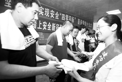 日前,安徽淮北礦業(yè)集團(tuán)楊莊礦開展送安全鞋墊活動(dòng)。鄭洪光 攝