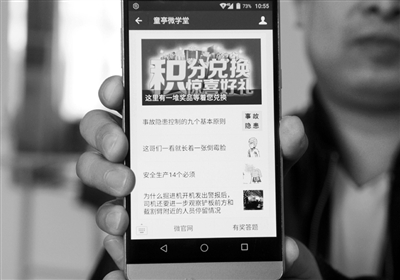▼近日,安徽淮北礦業(yè)集團(tuán)童亭礦積極探索安全培訓(xùn)的新途徑、新方法,在手機微信平臺“童亭微學(xué)堂”內(nèi)設(shè)立有獎答題環(huán)節(jié),累積相應(yīng)的積分就可以兌換相應(yīng)的獎品,調(diào)動大家參加培訓(xùn)的積極性。