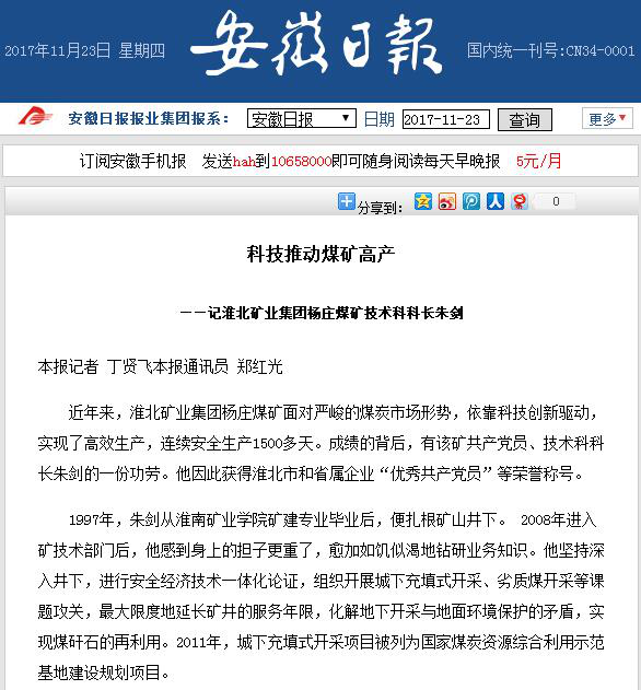 近年來,淮北礦業(yè)集團楊莊煤礦面對嚴峻的煤炭市場形勢,依靠科技創(chuàng)新驅(qū)動,實現(xiàn)了高效生產(chǎn),連續(xù)安全生產(chǎn)1500多天。成績的背后,有該礦共產(chǎn)黨員、技術科科長朱劍的一份功勞。他因此獲得淮北市和省屬企業(yè)“優(yōu)秀共產(chǎn)黨員”等榮譽稱號。