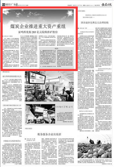 雷鳴科化擬203億元收購(gòu)淮礦股份