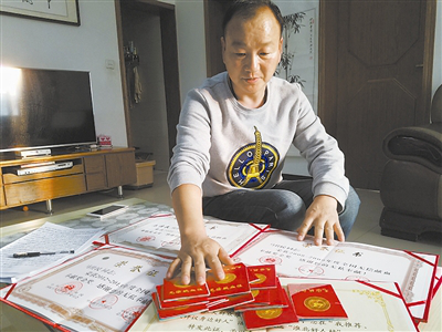 15年時間里,無償獻血86600毫升,其中機采血小板達到104個治療量,折合獻血量83200毫升。先后獲得國家無償獻血奉獻獎金獎、安徽省2015年度“獻血公益之星”、2016年度第五屆淮北市道德模范等榮譽稱號。大大小小的榮譽證書和16本鮮紅的獻血證差不多鋪滿整張桌面……