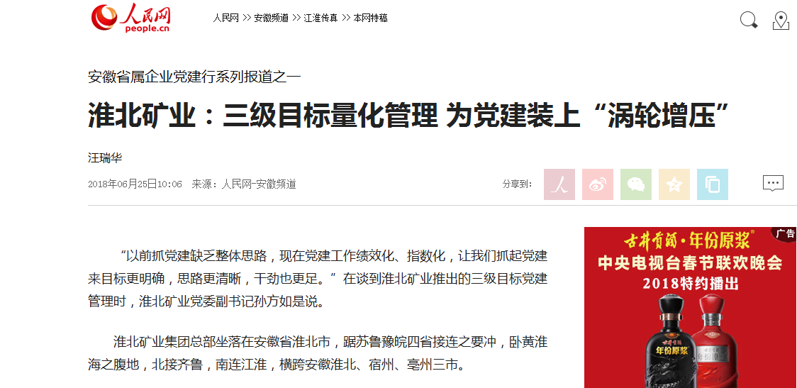 “近年來,淮北礦業(yè)以清單式管理、臺賬式跟進、績效式管控為基礎(chǔ),以量化管理、常態(tài)監(jiān)管、目標導(dǎo)向為路徑,不斷創(chuàng)新推動黨建工作,在面臨煤炭經(jīng)濟整體環(huán)境低迷的現(xiàn)實情況下,實現(xiàn)了生產(chǎn)經(jīng)營與黨風(fēng)廉政建設(shè)同頻共振的雙贏局面?!绷钠鸹幢钡V業(yè)發(fā)展現(xiàn)狀,淮北礦業(yè)黨委宣傳部部長張勝自豪地說。