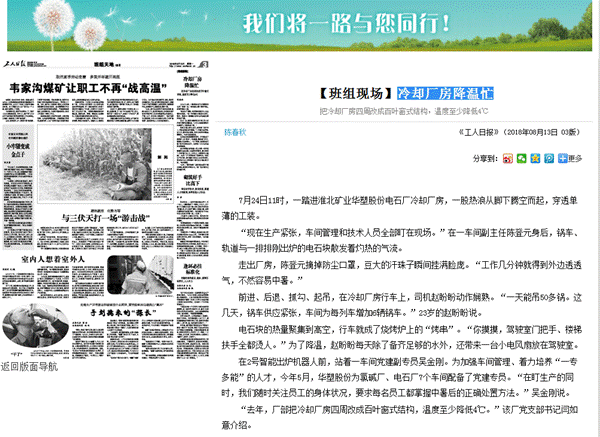 “去年,廠部把冷卻廠房四周改成百葉窗式結(jié)構(gòu),溫度至少降低4℃?!痹搹S黨支部書(shū)記閆如意介紹。