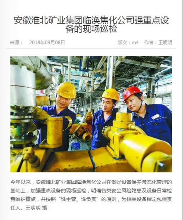 《中國煤炭報》:臨渙焦化公司檢修設(shè)備保安全