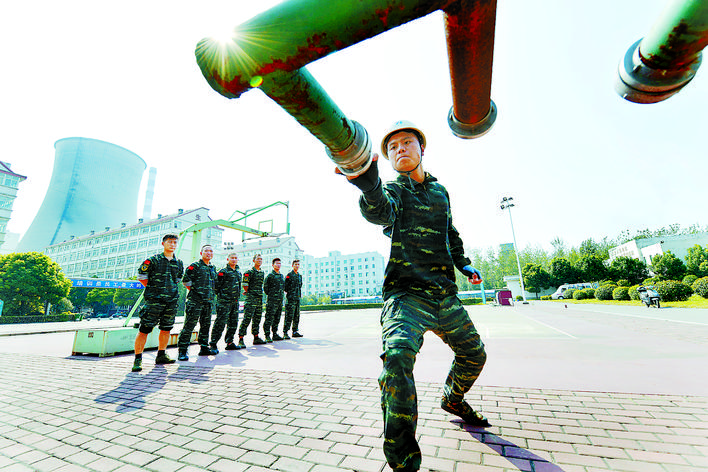 日前,安徽淮北礦業(yè)集團(tuán)臨渙焦化公司專職消防隊(duì)的業(yè)務(wù)骨干正在認(rèn)真訓(xùn)練,備戰(zhàn)2018年全國(guó)危險(xiǎn)化學(xué)品救援技術(shù)競(jìng)賽。為了備戰(zhàn),該公司抽調(diào)了10名業(yè)務(wù)骨干,組建了集訓(xùn)隊(duì),開(kāi)展為期三個(gè)月的集中訓(xùn)練。王明明 攝